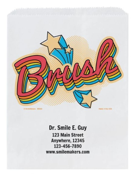 ● Pack it all up in a colorful custom paper bag imprinted with your office information for an easy and affordable handout.